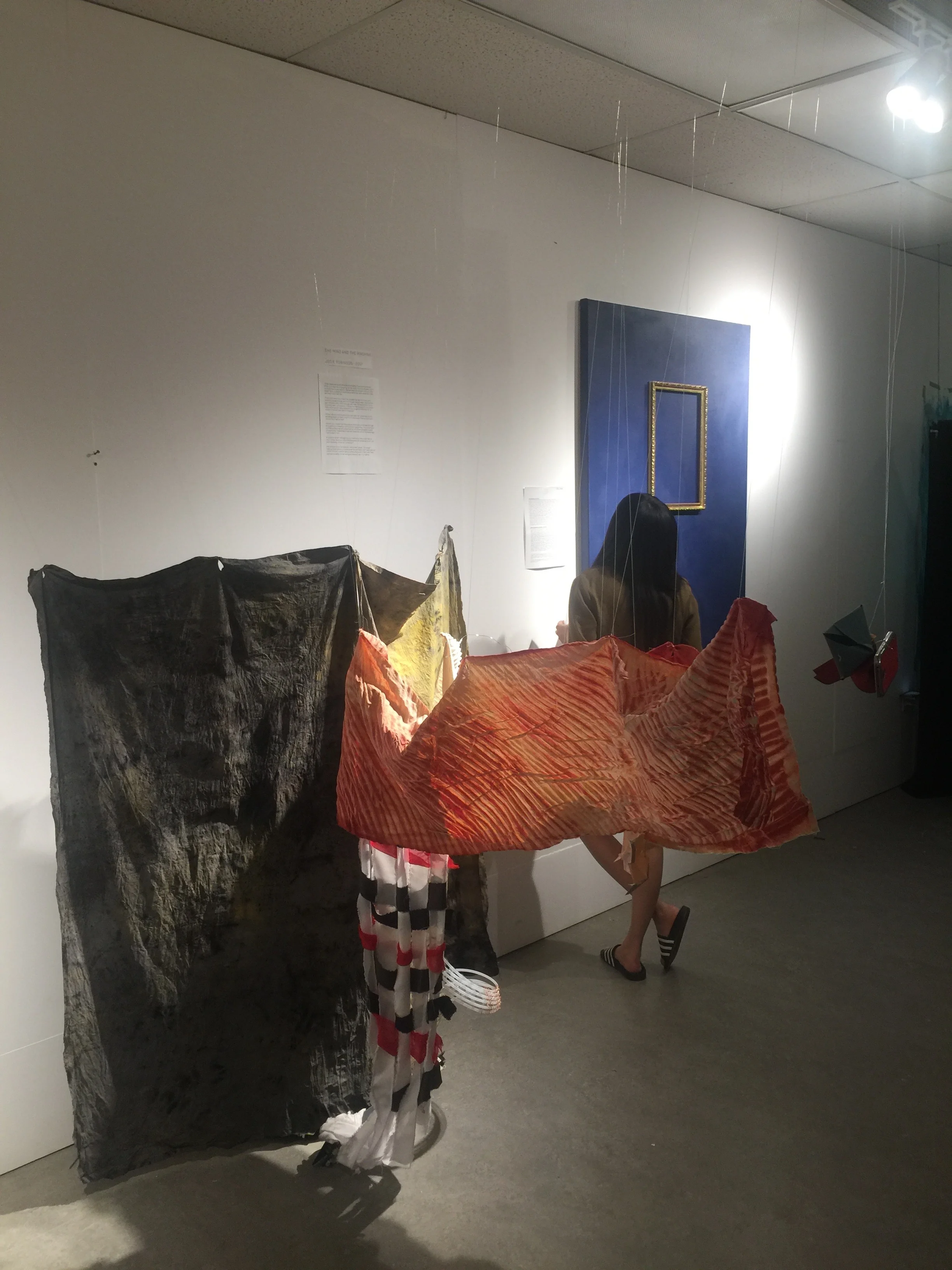Josie's project (in foreground) featured an installation with fabrics that she dyed herself to reimagine the colour palette of the Cassatt painting.